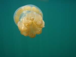 而從導遊口中知道 這邊的水母有白色、黃色跟頭腳分離的三種(第三種係因人為造成)