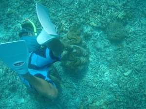 這地方有不少很大的干貝(活的) 有多大 看下面照片就知道了(趁導遊下去當比例尺)