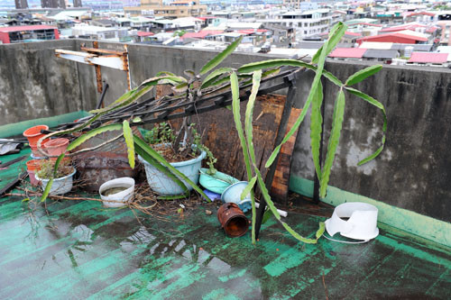 看看下面這張圖就知道 我家屋頂的木架也被吹垮了 可見昨天白天的威力!