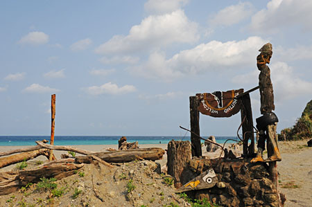 簡單的木雕與裝飾 漂亮的草皮 還有清澈的大海映在眼前