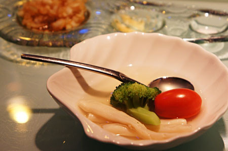 網頁上介紹的內容為:湯頭是用新鮮魚骨及蔬菜熬煮而成,具有非常豐富的深海魚類膠原蛋白,可以同時品嚐鮮脆的象拔蚌及鮮美的鮪魚,鮮味十足。
