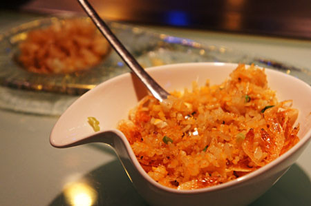 櫻花蝦炒飯:鐵板上的經典料理,加入黃金蝦卵及酥炸櫻花蝦,是一道色、香、味俱全的炒飯