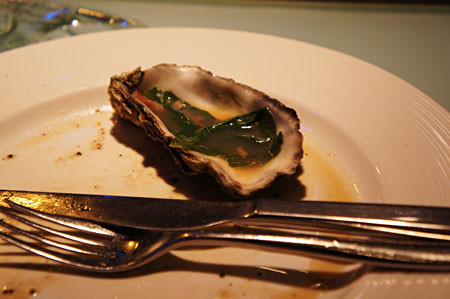 法式海鮮盤:焗烤草蝦以及生蠔、干貝搭配搭配以南極進口肉質彈Q的圓鱈下巴,以小火慢煎口感鮮嫩甜美,搭配地中海鹽提味讓綠螺及干貝嚐起來鮮美滑嫩,魚肉香甜有彈性