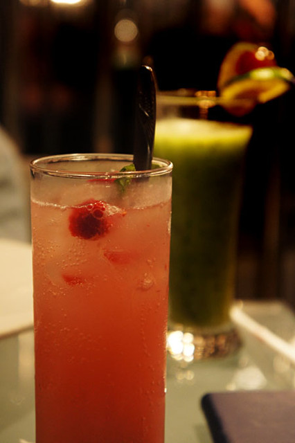 在你吃的同時 服務生則會插花端一杯汽泡式飲料給妳