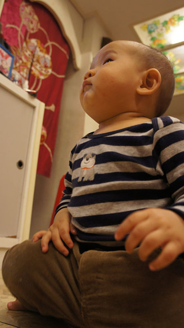 (這麼專注的眼神... 其實是被電視吸引了..)