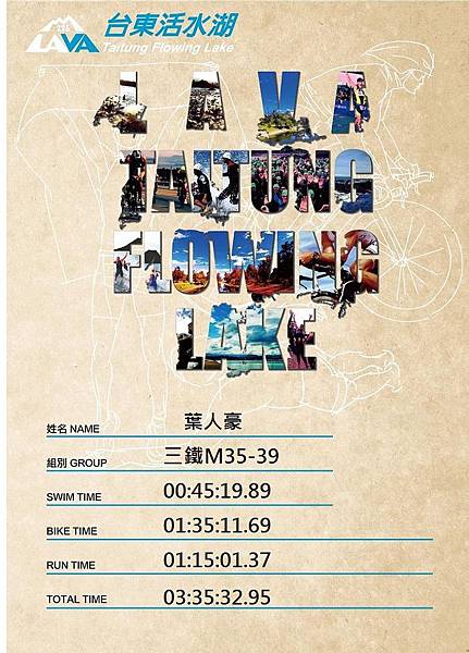 (雖然經過終點時是3:40:27, 不過成績單查詢的結果是3:35:32 可能是他扣除了一開始下水時的等待時間吧!)