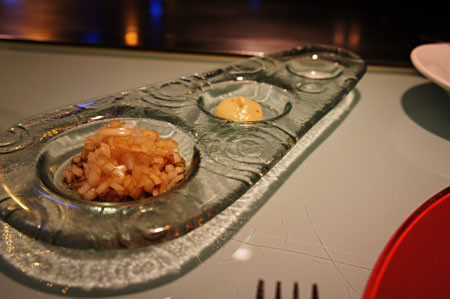 服務生會先端出佐醬放在旁邊 而我則是先試吃了一下